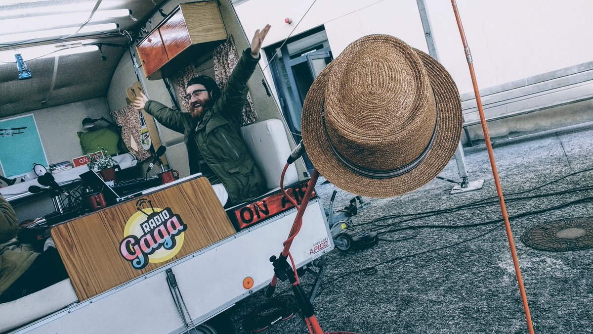 Como parte del rito de instalación, el dúo realiza el reparto de los transistores que permiten la escucha de programa durante esos dos días, aparatos personalizados con el logotipo de Radio Gaga que, como apunta Peinado, «no pueden molar más«.