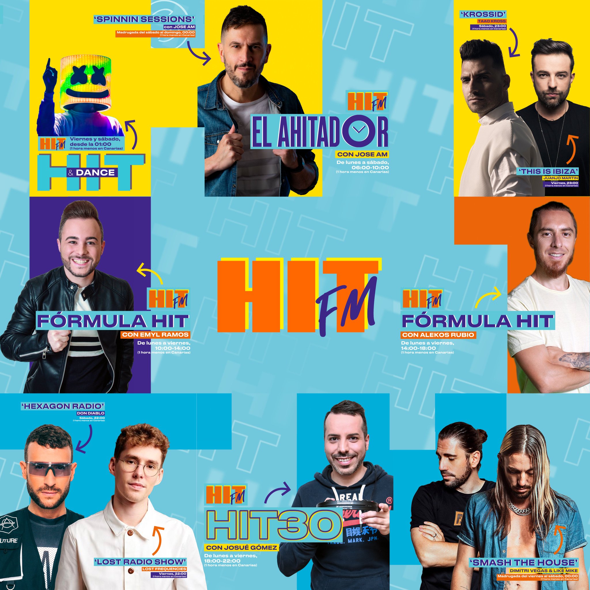 Los casi cuarenta postes de la cadena de Kiss Media/Grupo R. Blanca seguirán ofreciendo El A-Hit-ador como programa-despertador con José AM (El Prat Ràdio, Flaix FM, Máxima FM) al frente. La mañana, apuestas regionales aparte, estará pilotada por Emyl Ramos (Loca FM, Happy FM, MegaStar) hasta las dos de la tarde, momento para el relevo con Alekos Rubio (Kiss FM, Loca FM). La tarde-noche, de seis a diez, es para Josué Gómez (MegaStar, C100) y su Hit 30.